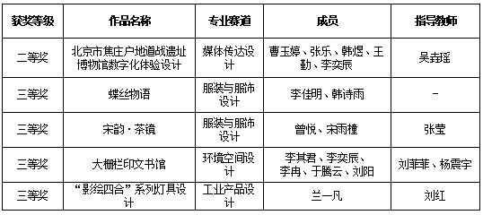 近日,第三届中国研究生 “美丽中国” 创新设计大赛评选结果正式公布。我校研究生团队此次共提交23项参赛作品,覆盖媒体传达设计、服装与服饰设计、环境空间设计、工业产品设计等五大赛道。其中,5件作品从全国7339件作品中脱颖而出,共斩获全国二等奖1项、三等奖4项,充分彰显了我校学子扎实的专业素养与卓越的创新能力,也体现了学校办学育人的丰硕成果。获奖名单如下: