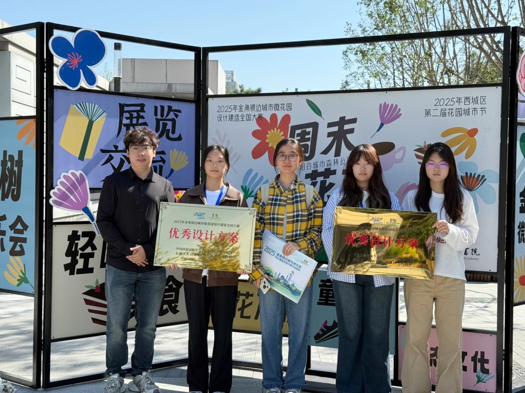 近日,由中国风景园林学会与北京市园林绿化局等单位联合主办的2025年“金角银边”城市微花园设计建造全国大赛成功举办。本次大赛以“推动城市空间微更新 共建宜居花园城市”为主题,旨在引导社会各界参与城市微空间改造实践。我校城市建设学部积极组织学生参与,两组作品脱颖而出,荣获“优秀设计奖”。