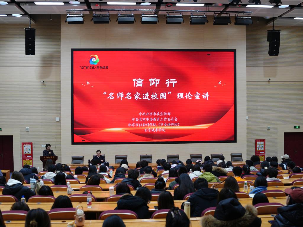 11月5日,由中共北京市委宣传部、中共北京市委教育工作委员会、北京市社会科学院(市委讲师团)与我校共同主办的“‘京’彩文化 青春绽放”信仰行——“名师名家进校园”理论宣讲活动在顺义校区西阶梯教室成功举行。活动吸引了全校师生党员、团员代表共300余人参加,现场学习氛围浓厚。
