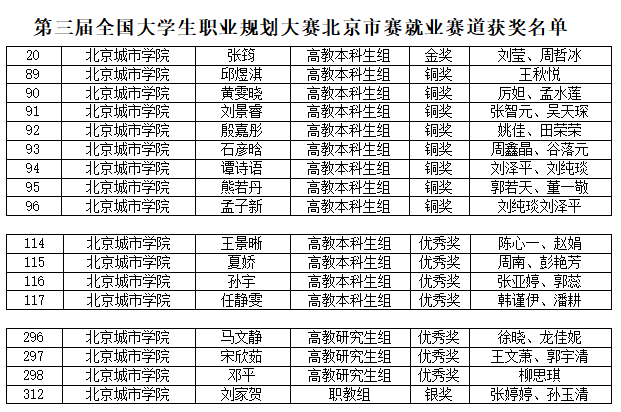 近日,第三届全国大学生职业规划大赛北京市赛圆满落幕。我校在本届大赛中荣获佳绩,共斩获金奖1项、银奖2项、铜奖25项及优秀奖19项,学校荣获“最佳组织奖”。
