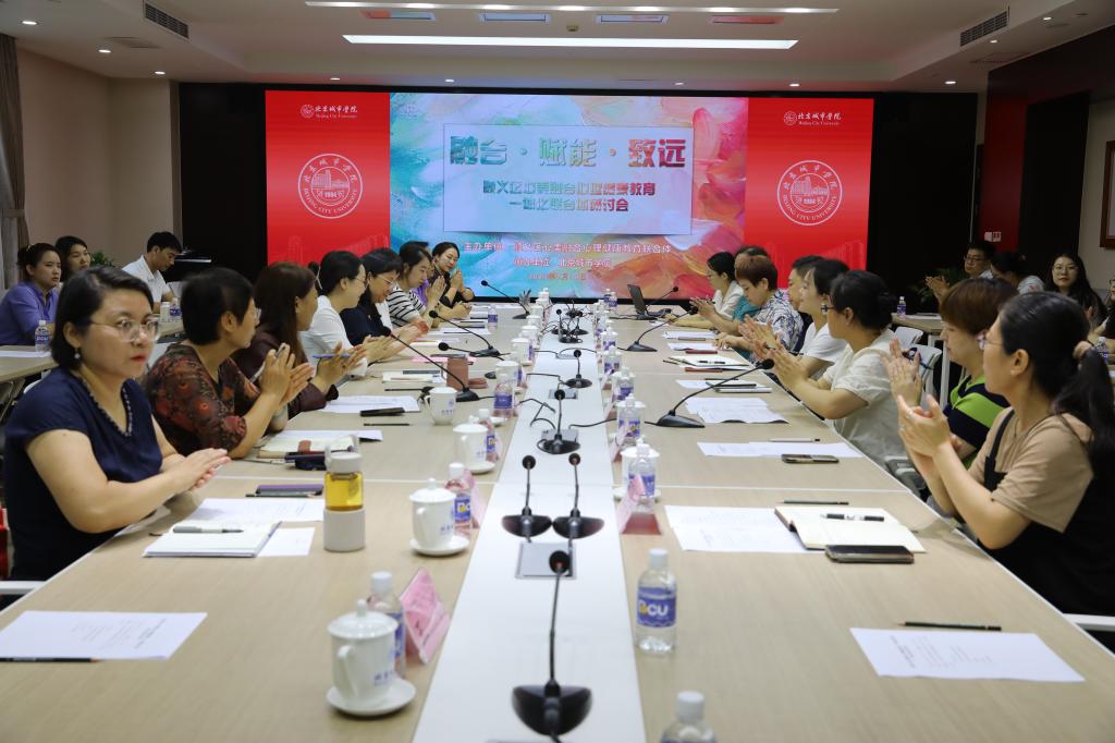 为深入贯彻党的二十大精神,落实立德树人根本任务,落实教育部等十七部门《全面加强和改进新时代学生心理健康工作专项行动计划(2023—2025年)》要求,7月10日,“融合·赋能·致远:构建‘心理+美育’协同育人新生态”主题研讨会在我校顺义校区顺利召开。本次会议由顺义区心美融合心理健康教育一体化联合体主办、我校承办。联合体各成员校的30余名专家、教师代表和特邀嘉宾齐聚一堂,共同探讨大中小学一体化心理健康教育的创新路径。顺义区教委副主任蒋吉姝、我校副校长袁佳出席会议。会议由我校学工委副书记陈怡主持。