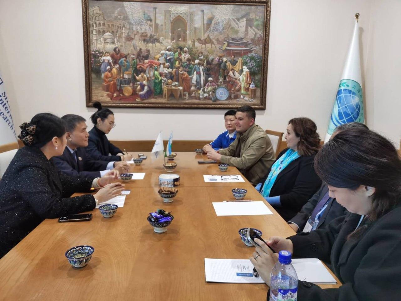 论坛结束后,我校代表团赴撒马尔罕专程访问丝路大学,与其第一副校长Dilmurod Nasimov、副校长邹统钎教授举行座谈。双方围绕学科建设、人才培养、师资互访、学生交流等议题深入交流,一致同意在备忘录框架下进一步拓展其他领域的合作。期间,龚裕还会见了丝绸之路国际研究院院长Mavlyuda Yusupova。双方商议,将共同策划并申报文化遗产高水平科研项目,联合开展文化遗产保护培训等议题的研究,推动中乌教育、科研合作向更高质量升级。