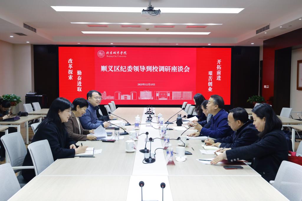 12月15日,顺义区委常委、区纪委书记、区监委主任马红萍一行来到我校开展调研指导。校长刘林,党委书记龚裕,校务委员会副主任宋贵伦,党委副书记、纪委书记叶映芳以及相关学部、中心负责人参加调研和座谈。